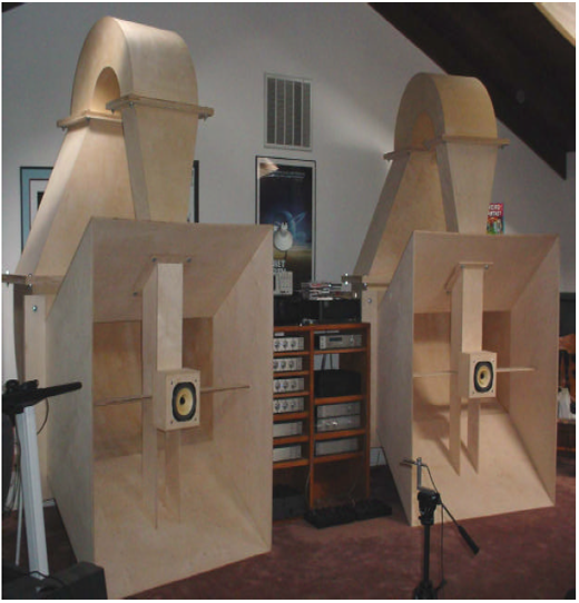 Left: JBL 4344 (1982-1983) Right: Folded horn DIY cabinet with Fostex FE206n[3]
